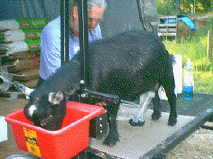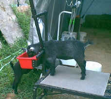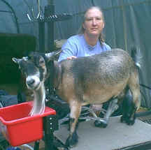 Over the many years of owning, breeding, and showing pygmy goats, one question kept coming up, "What do you do with them?".  Fair goers, co-workers, and prospective goat owners have asked this question of us many times.  The American Goat Society, the first registry to recognize the pygmy goat in America, defined the pygmy as a miniature dairy goat.  Several long time breeders and founders of the National Pygmy Goat Association tout the milk quality and milking ability of pygmy goats.  This aside, we still toyed with the idea of getting a dairy goat for the milk.  But why?  Are pygmies good milk goats or aren't they?   During the summer of 2001, we decided to give it a try.